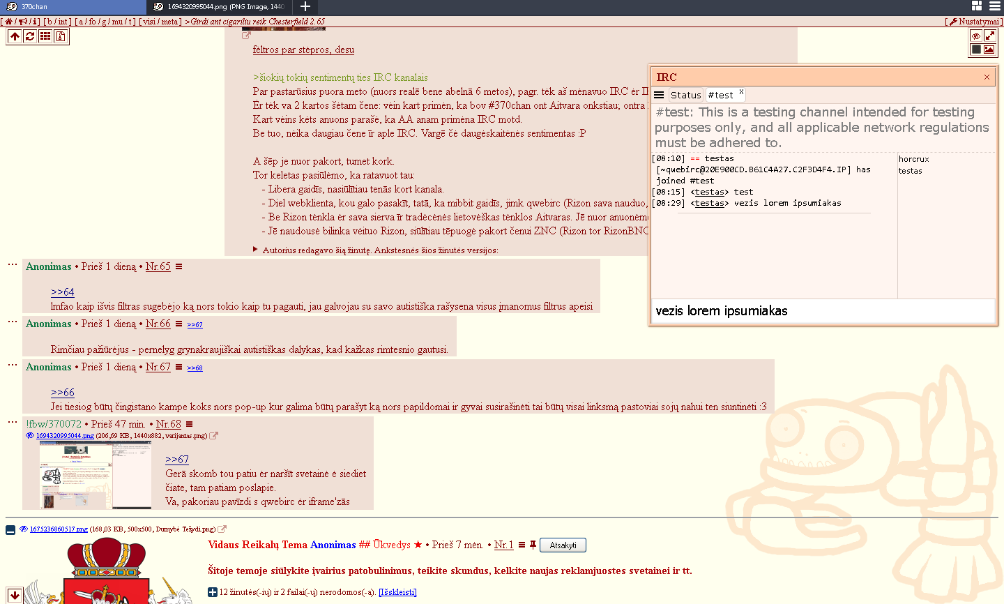 Sveiki, pastaruoju metu pastebėjau šiokių tokių sentimentų ties IRC kanalais, kilo idėja sukurti vieną čiongui ir atsikratyti disc**d.